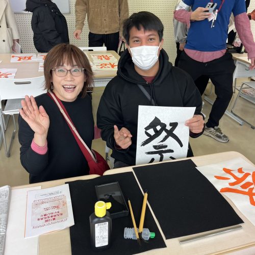 YMCAにて書道体験会未分類 2024.12.16YMCAにて書道体験会第10回北九州多文化共生わいわい祭り(北九州YMCA会場)にて外国人の方々に書道を体験していただきました。書道教室には予想をはるかに超える400名以上の方々が参加されました。お声かけいただいたYMCAの方々、お手伝いいただいた師範の皆様、貴重な経験ができました。どうもありがとうございました。